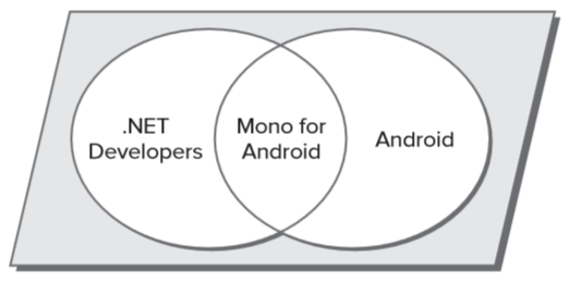 یک نقطعه ضعف NET/Mono. و Android این است که توسعه دهندگان NET/Mono. نمی توانند دانش #NET/Mono/C. ایجاد و آن را در Android platform تایید کنند. تصویر زیر این مفهوم را نمایش می دهد.
