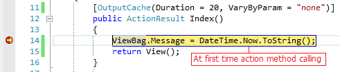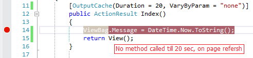 خروجی Index() action برای مدت 20 ثانیه کش می شود در صورتی که شما این مقدار را تعیین نکنید به صورت پیش فرض زمان بر روی 60 ثانیه تنظیم شده است.