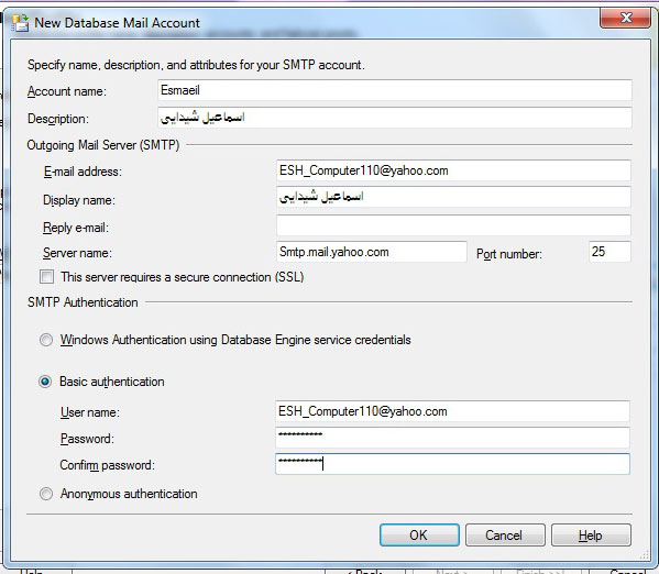 پیکربندی Database Mail وارسال ایمیل از طریق Database Mail