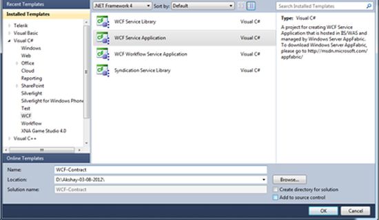 نوع پروژه را NET Framework 4. و گزینه WCF Service Application را از لیست WCF انتخاب می کنیم.