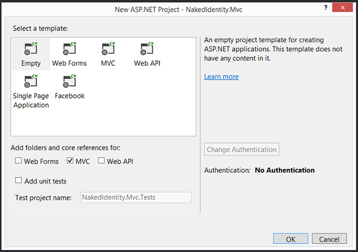 یک Empty ASP.NET MVC web application ایجاد کنید.